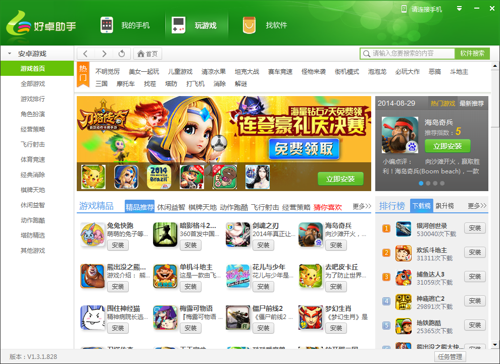 好卓手机助手是一款安卓应用市场软件。产品支持手机、平板、智能电视等Android平台系列终端设备,应用收录齐全,机型适配广泛。好卓助手提供海量游戏、应用。通过它可以轻松的下载、安装、管理手机应用,优化手机资源利用。好卓手机助手提供的所有的应用、游戏均为绿色无毒软件。
