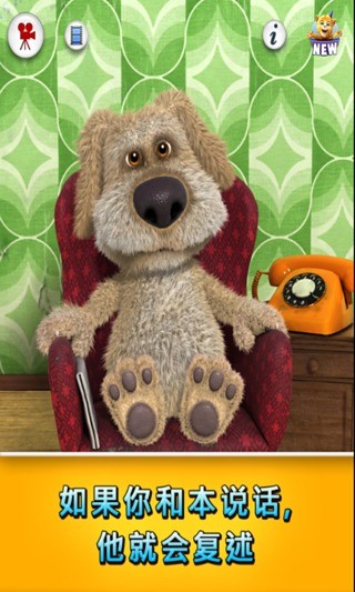 会说话的狗狗本(Talking Ben)是Outfit 7的有一款爆笑的游戏,玩过汤姆猫和安吉拉的用户一定会喜欢这款游戏的,赶紧来与汤姆猫最好的朋友狗狗本见面!这款专门针对中国市场开发的版本,更适合国内用户,如视频共享国内版支持腾讯微博、新浪微博、qq空间和优酷。用户下载时请注意!(若要使用腾讯、新浪微博,qq空间共享需要安装其客户端.)