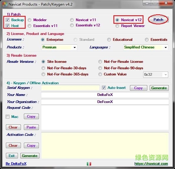 2.确认Backip、Host和Navicat v12都勾选了(如下图),点击“Patch”