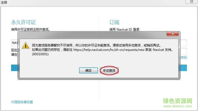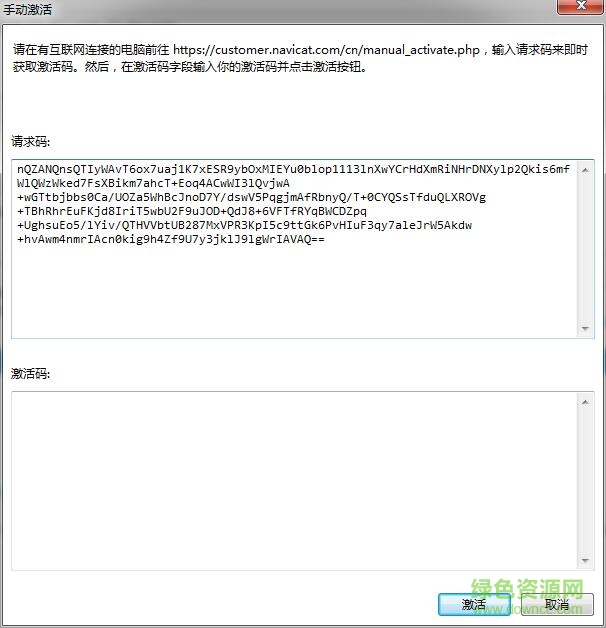 7.会提示激活服务器暂时不可使用,这个时候点击“手动激活”,会生成一个“请求码”