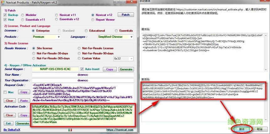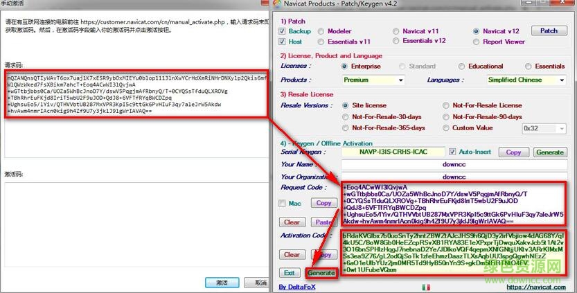 8.将上图的请求码复制到注册机的“Activation Code”框中,然后点击“Generat”按钮,“Activation Code”处就会生成一串激活码