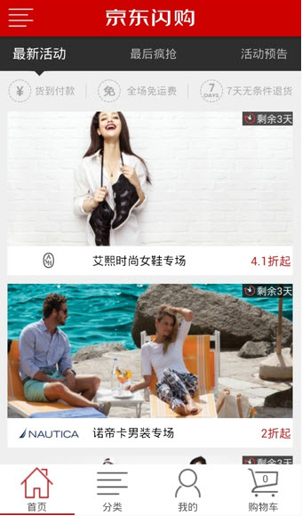 对于消费者而言,取名为“红!”的京东闪购甫一诞生就与众不同,无论是视觉还是购物体验都会耳目一新,带给用户一个更柔美、更亲和的京东。京东闪购契合京东高品质的用户资源,以奢侈品、服装运动鞋帽为主,涵括家装、食品等国内外知名品牌,货品全部预先通过严格质量检测,并采用京东自营供应链系统进行仓储配送服务,保证时效的同时还支持货到付款。