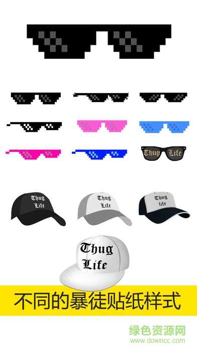 5.大量的精选Thug Life贴纸,包括墨镜,项链,香烟,文字,帽子等等