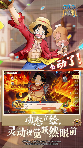 航海王启航是根据超人气动漫《海贼王》改编而来的同名手游,是一款真实还原海贼王剧情的冒险rpg游戏。游戏完美再现气势磅礴的大海盗时代,原著角色现身游戏演绎华丽即时动作战斗,用紧张刺激的热血玩法诠释原著魅力!通过收集培养原著中魅力十足的的各个角色,组建只属于玩家自己的海盗团,目标是成为海盗王。