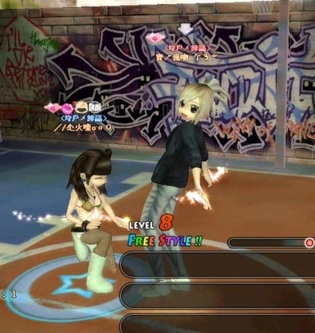 按照舞步中的箭头顺序依次输入方向键。输入正确的方向键颜色会由蓝变绿,将舞步方向输入完毕后,观察节拍器里的小珠球滚动。当小珠球从左至右移动到与蓝白闪光区域时敲击空格键 ,只要按要求敲击空格键,角色就会跳舞了,并且角色头顶上会有这个舞步的效果显示,游戏效果所得分数由高到低排列为:PERFECT > GREAT > COOL > BAD > MISS。