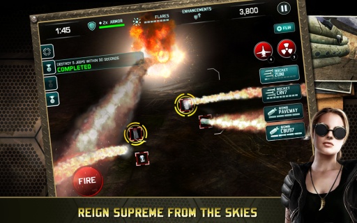 以军事题材为设定的空中射击游戏,玩家将可以使用多种无人机进行游戏,虚拟现实世界沉浸式环境和原创的FLIR(前视红外线)摄像机,并可以自定义给无人机装备各种强力的武器,包括机枪、机炮、导弹、炸弹、激光武器甚至是呼叫空中支援以及核弹等,让您体验操作无人战机的快感。您必须一步一步地掌握一系列隐秘任务所需要用到的命令,使用超高科技装备、策略和技巧以及超强火力,给敌方以毁灭性打击,一切操作都是用您的指尖完成的!