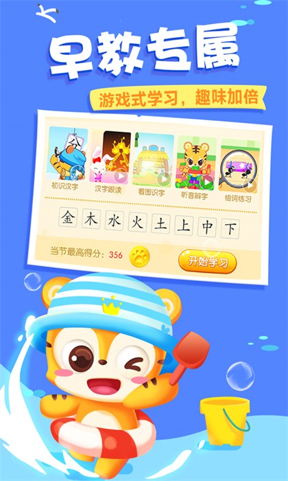 全面覆盖学前常用汉字,5000多个词语学习,240个益智互动游戏,50个主题章节学习课程