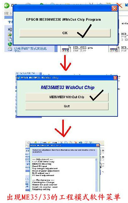 2、弹出一个窗口,点ok,选择第一个ME35/ME33 without chip