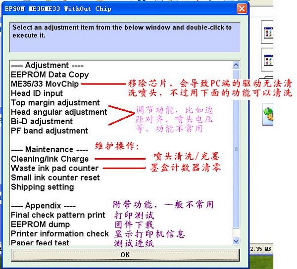 如果你的爱普生me35打印机出现“部件已到使用寿命”这样的提示,那么代表需要对墨盒进行清零处理,爱普生me35清零软件可以完美清零ME35彩色喷墨打印机