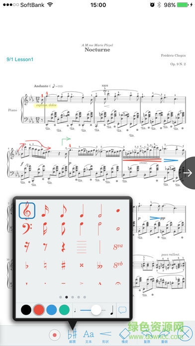 当然,您也可以在乐谱上记下任何注释。提供3种尺寸和6种颜色的笔,易邮票输入,文字写作。