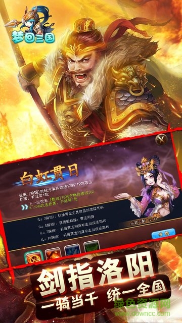 梦回三国满v变态版是一款经典三国题材的卡牌手游,游戏画面设计精美华丽,玩法丰富有趣,华丽特效全屏展现,喜欢三国手游的朋友欢迎来绿色资源网下载试玩!