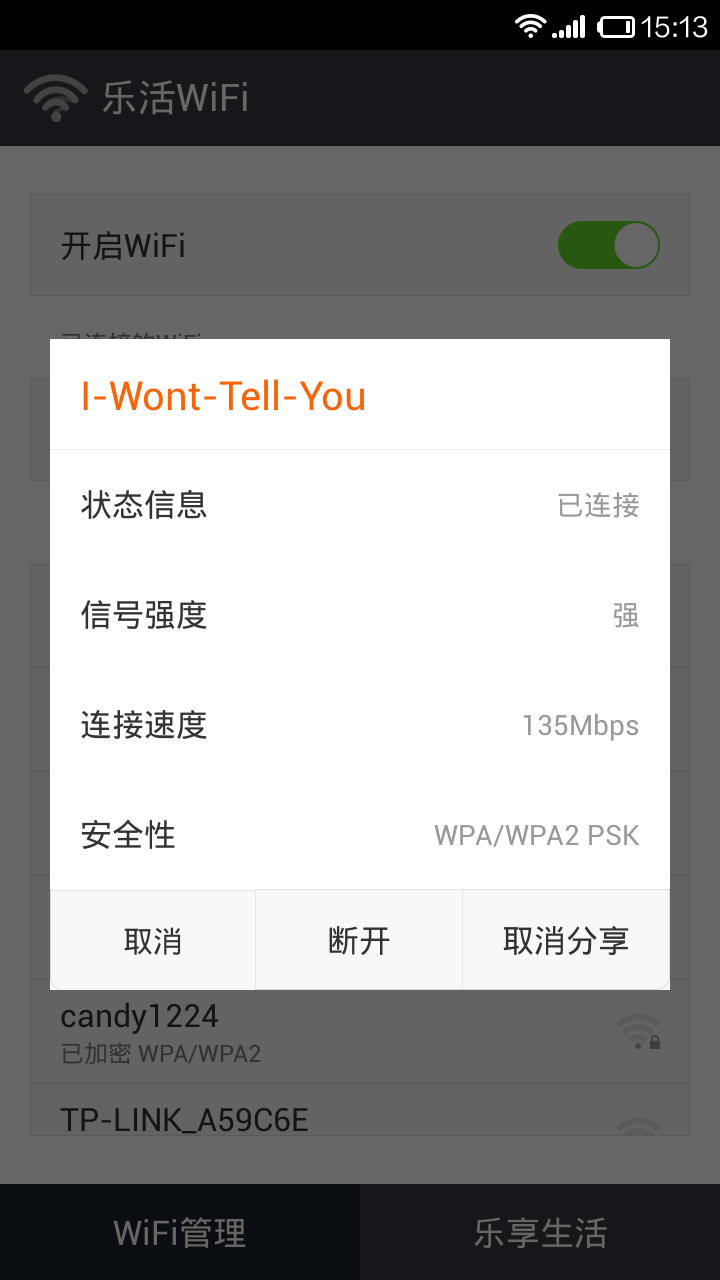 乐活WiFi是一款免费wifi热点连接工具,它并不是WIFI,而是分享WIFI,云端数据库内置千万Wi-Fi热点数据包括中国电信百万ChinaNet热点数据,帮你随时随地免费连上附近wifi热点,轻轻松松免费上网社交聊天、学习、购物、看电影、看视频、看新闻资讯、看美图、看搞笑段子、玩游戏、听音乐、看漫画、找女朋友!wifi万能钥匙——连接免费WiFi的上网神器,扫除无网断网状态,提高移动办公效率,尤其适合学生、商务、移动人群和重度网虫。