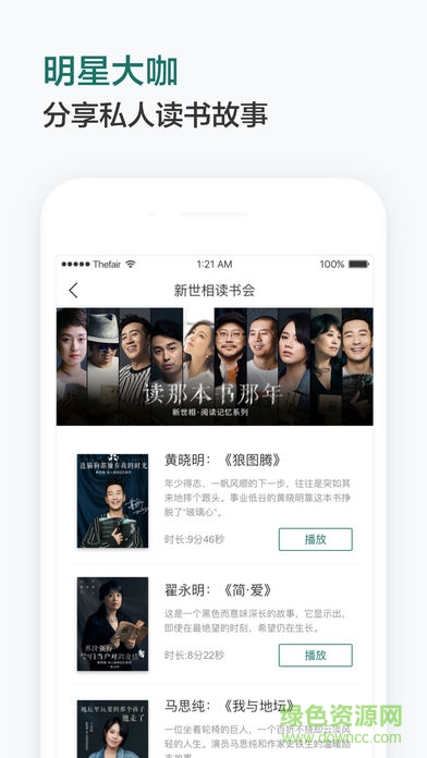新世相读书会app是一款听书平台,这里汇聚了众多文学家,提供了精品课程推荐,用户可在线阅读名家的阅读作品,学习更多新知识,不断开阔视野,欢迎来绿色资源网下载!