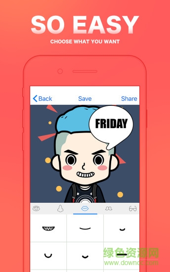 faceQ软件(MYOTee脸萌)是一款专门用户制作头像,小图片,表情包等等作品的手机工具,软件内有超多的素材,发挥你的大脑将它们拼凑在一起,制作出属于你的可爱图片,同时还可以制作各种表情包哦,需要的用户快来绿色资源网下载吧!