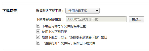 点击后能使用360下载器下载资源了,点击设置选项还能对下载器进行设置