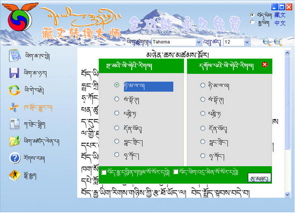 藏文转换大师是一款将不同编码的藏文文件相互转换的软件。可进行Himalaya、sambhota、班智达、同元、方正、华光等藏文文件的互转, 解决了不同编码藏文文件之间互不兼容的问题,实现了各类藏文资源的共享。软件中还附加了藏语文排序功能,以适应一些用户的特殊需要。该软件操作方便,转换准确率高,为藏文学习、研究、办公、编辑、出版、印刷等处理各种藏文文件提供了极大方便。该软件有藏汉双语界面,操作方便、转换准确、实用性强,是一款深受好评的藏文编码转换工具。