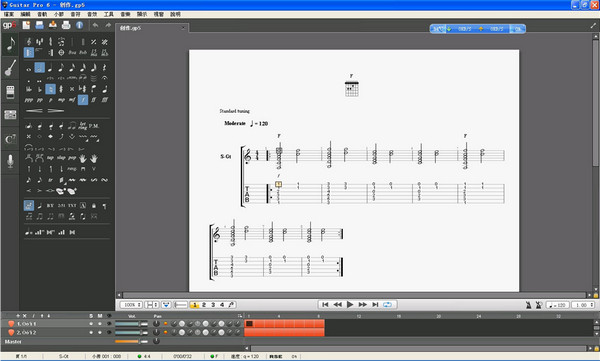 gtp6修改版无需注册就能直接使用的经典版本,作为专业的谱子的读写软件,gtp6修改版独有的吉他谱和5线谱的对照功能,使得练吉他更加的简单了!