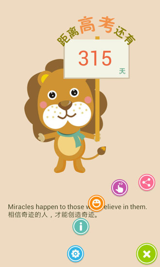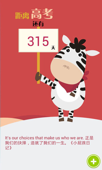 高考倒计时是专门为正在高中同学高考准备的一款倒计时软件,全面支持高一到高三三个不同年级,希望可以陪伴你们直到走进考场的那天。