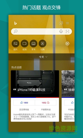 必应浏览器手机版是一款由微软打造的手机浏览器,其界面非常的简约美观,其搜索能力也是极其强大的,支持多种模式的浏览,还能优化垂直搜索,更能多台设备同步搜索记录,以及设置,还支持以图搜图模式,强大的广告拦截处理,让你告别广告,欢迎来绿色资源网下载!