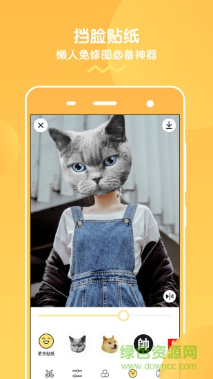 挡脸相机app是一款美颜相机app,海量精美挡脸贴纸上线,玩转自拍新招式,专业滤镜让照片成为一种风景,编辑功能齐全,欢迎到绿色资源网下载使用!