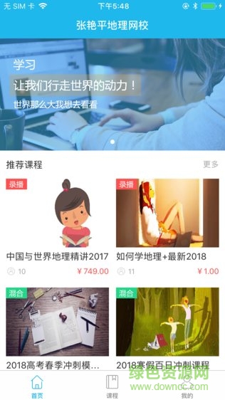 全国高考地理名师张艳平老师的网络在线学习app。张老师本着只为学员提高成绩的原则,全年将开设自然、人文、区域地理等课程,目前已授课学员超过8万,多数学员考入清华北大等全国重点名校。学员可以通过app购买并收看直播、录播课程,并且可以将视频缓存到app中,在无网络的条件下观看。