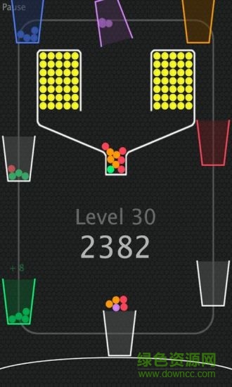 1.尽量不要减少被子数量,在八个杯子在经过下方0度的时候没有接到球体,就会被移除。