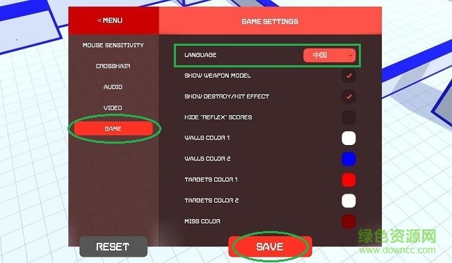 2.点击最好一个选项“GAME”,在“LANGUAGE”下拉栏选择“中文”,点击最下面“SAVE”就变成了中文的