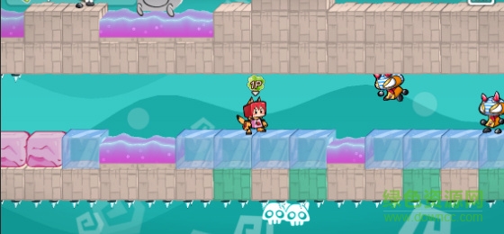首先,基本移动按键要靠虚拟的上下左右按键, 左右按键不用多说,按住向下键时小方块会缩成一个球,可以躲避一些攻击哦!向上的按键在单人模式中是没有用的,多人模式中可很好的配合队友哦!