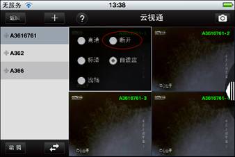 多画面模式下,选中已连接的画面窗口,使用手指在画面窗口上从下至上滑动,弹出如图所示界面: