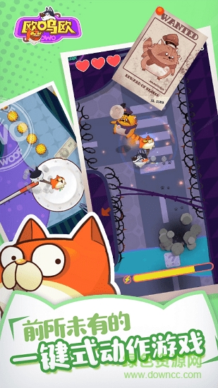 owo欧呜欧是一款动作闯关游戏,猫和狗在游戏中成了队友。在这款手游中,铲屎官被绑架了,喵和汪必须停止内战,通力合作来打倒敌人,救出主人。游戏的玩法很是奇葩,由于猫狗被拴在一起,你只能利用惯性来操作它们,期待属于他们的奇幻之旅吧!