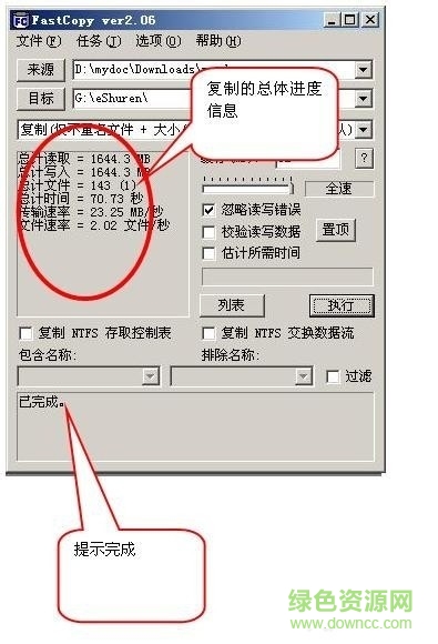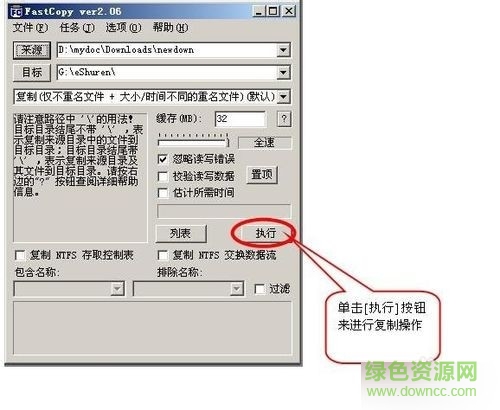 6.选择好文件来源与目标后,我们就可以单击[执行]按钮来进行复制操作。