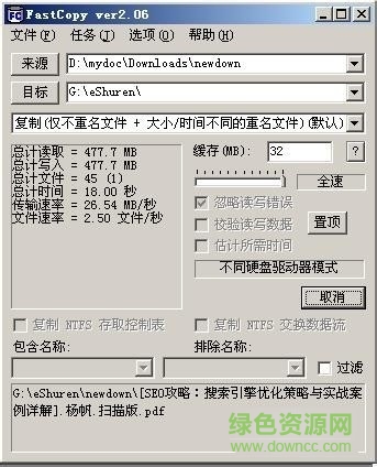 磁盘间相互拷贝文件是司空见惯的事情,通常情况都是利用windows自带的复制粘贴功能来实现的。这样做在数目较小的情况下倒也没什么问题,但是数目较大时,系统自带的复制功能就有些力不从心了。这时就需要fastcopy。一个424mb的电影其拷贝时间仅为21秒,传输速度达到了21mb/秒,不知比totalcopy之流快了多少倍。