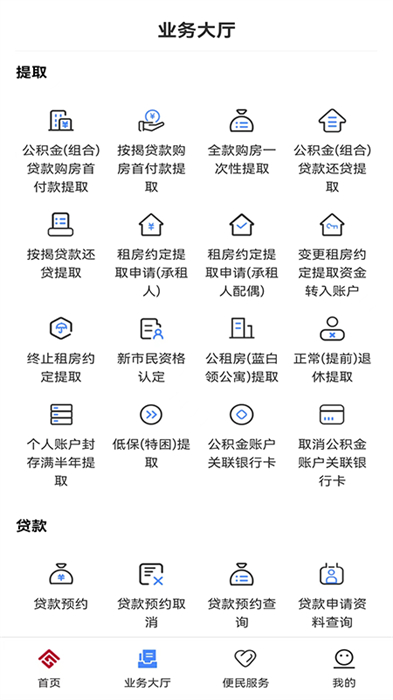 天津市住房公积金手机客户端,内容包括个人账户、还款情况、贷款进度、动态新闻、政策法规、业务指南、网点查询、人工服务、贷款计算,贷款专区等模块,具有良好的用户体验。
