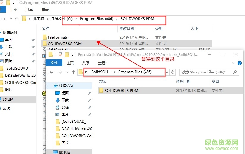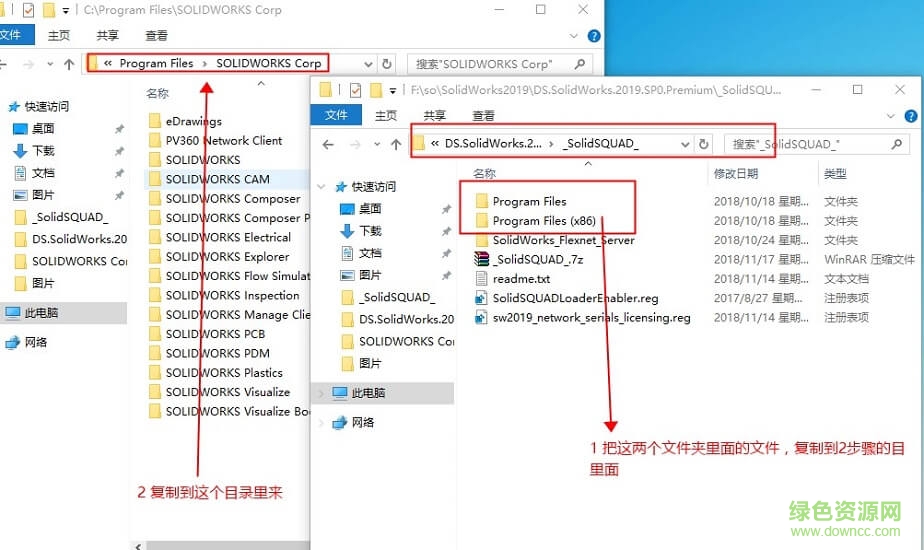 18.开始了,一定不要搞混了,先把压缩包两个文件progaram file和progaram file(x86)里的文件复制在你的c盘目录Program Files里的SOLIDWORKS Corp里面,一定要记住,progaram file和progaram file(x86)里的文件,不要把这两个目录直接复制进去了。