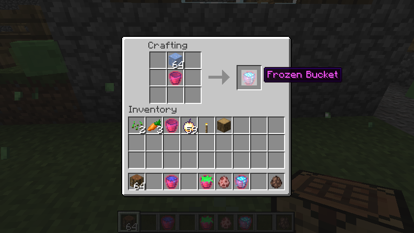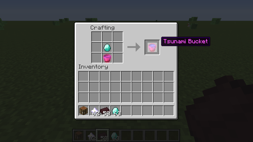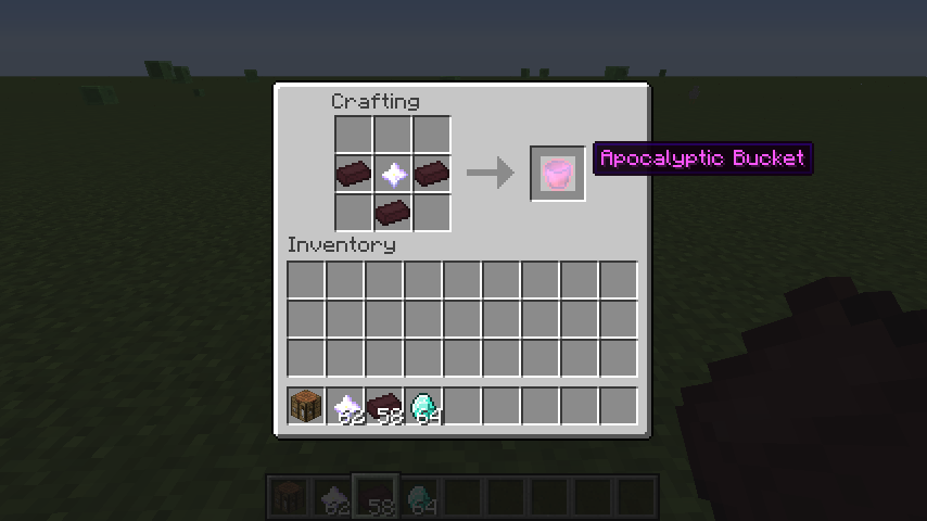 :这个桶十分可怕,会制造一个实体,吸引周围的方块和生物。创造模式被吸得动弹不得还会卡电脑