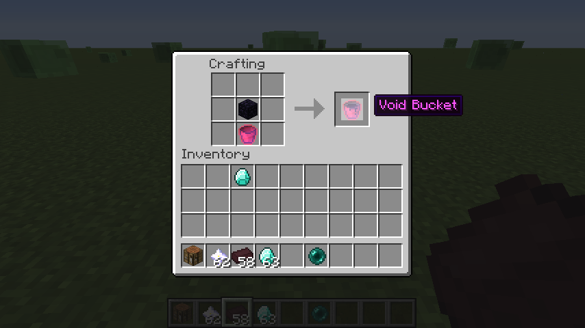 :会制造出一个黑乎乎的水方块!虚空!并且会扩散继续制造虚空,小心!掉进虚空池会燃烧!