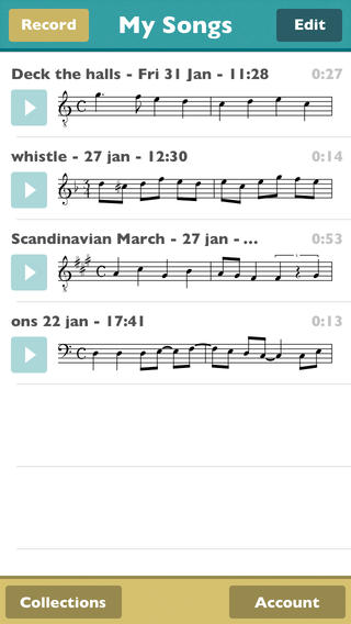ScoreCloud Express使用起来很方便,我们只需要打开手机的麦克风,点击录音功能就可以录制你的音乐。之后这段音乐会通过系统进行转换,一张你的音乐五线谱就完成了。使用这个软件你还可以选择不同的乐器来演奏乐谱,比如钢琴等,发现音调不准的地方还能够进行修改,设计十分贴心。