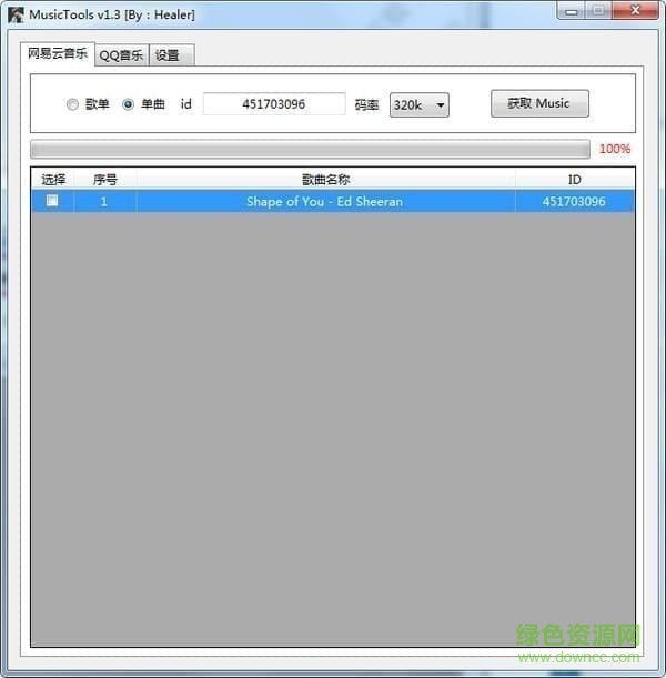 3.如果是网易云音乐的话,选择歌单或者单曲,然后粘贴ID,设置码率,就可以获取音乐;