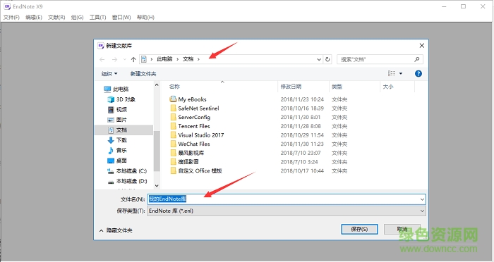 1.打开EndNote x9。点击文件->新建,在弹出的对话框中选择一个地址,修改文件名,新建文献库。