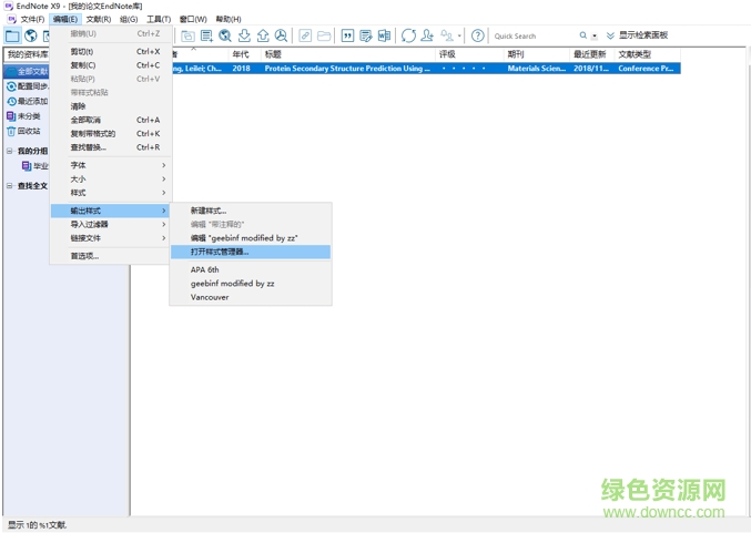 在 EndNote 界面上依次单击“编辑”(Edit)——>““输出样式”(Output Styles)——>“geebinfmodified by zz”“geebinfmodified by zz”即可。