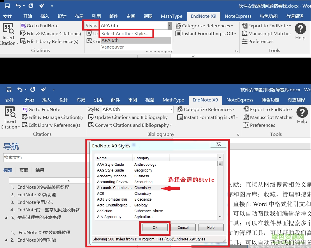 在Word中点开EndNote X9工具栏,选择Style—>Select Another Style...,选择合适的引用文献类型即可!Select Another Style...,选择合适的引用文献类型即可!