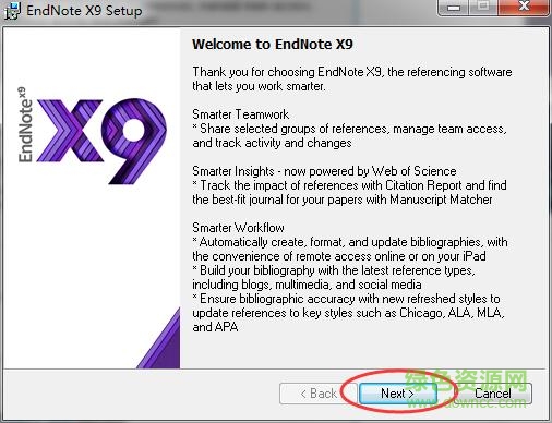 1.解压缩在绿色资源网下载的endnote x9安装包,双击“ENX9Inst.msi”