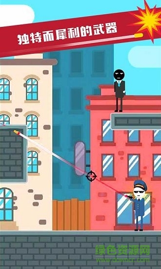 简约版的动作射击游戏,弱化枪战,融入物理解谜游戏,火柴人警察想要消灭坏蛋、间谍,不仅需要精准的枪技,而且必须动脑子。