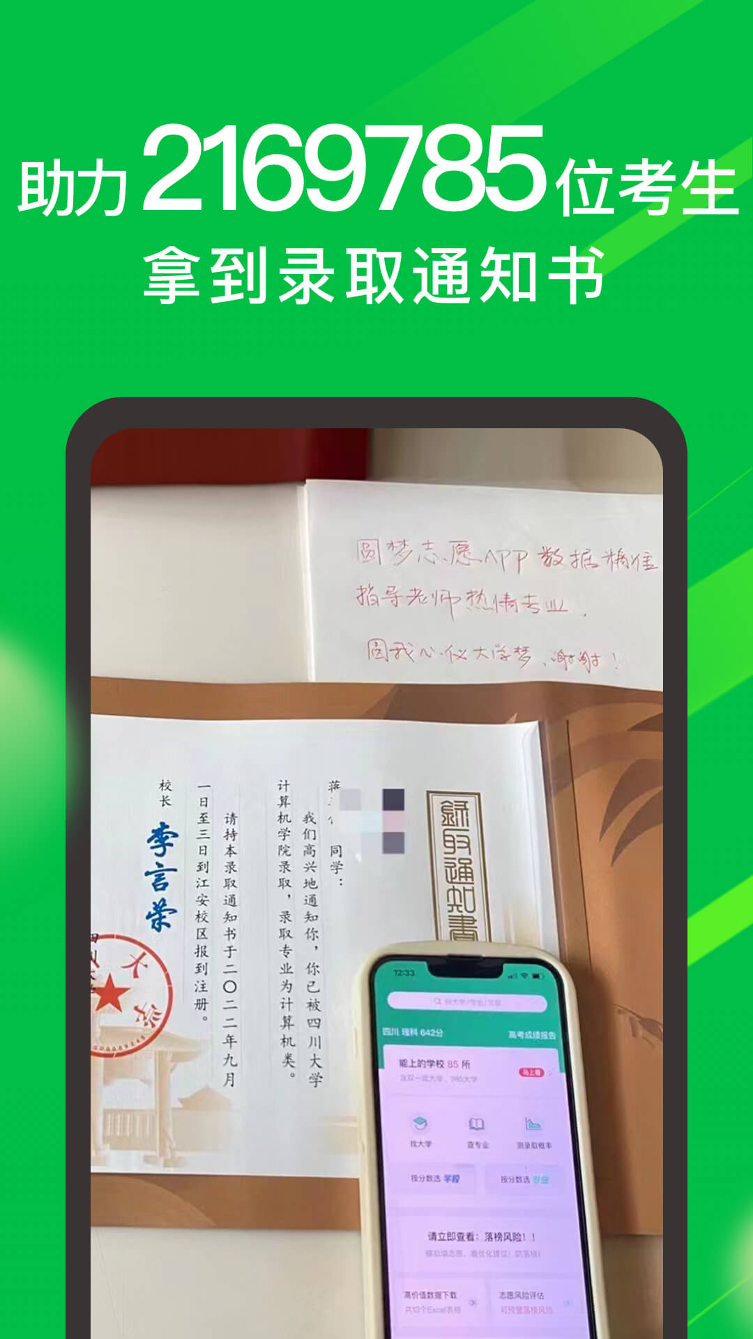 圆梦志愿采用“位次波动 + 专业分布密度”算法,学校录取概率评测更做优。
