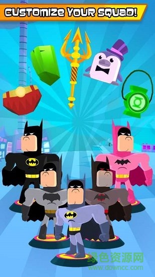 每个人物都可以用不同的方式重新粉刷!互换角色能力,使你的团队真正与众不同。把蝙蝠的信号和超人的内裤弄坏,给你在战斗中的优势;