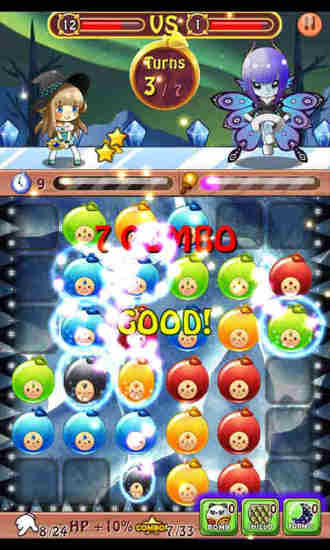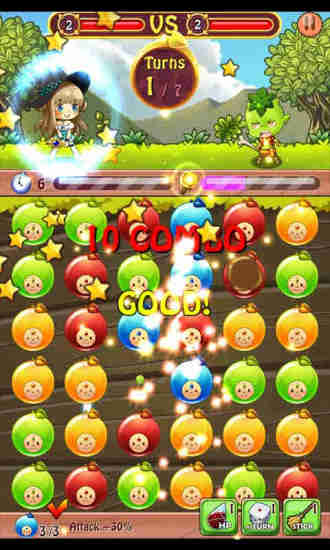 游戏中玩家的屏幕内会出现多个头顶上放着不同颜色泡泡的“地鼠”,你需要通过点破相应颜色的泡泡来集中魔力,最后施放魔法攻击。颜色就是旁边边框和左上方一个倒计时条一样的东西,跟他们颜色一样就对了,连击越高伤害越高。相反的点击错了的泡泡会打断连击数量,而且还会给怪物补血。总的言之,这个模式很容易上手,毕竟可以说是打地鼠吧!