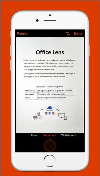 1、使用白板模式,Office Lens 能剪裁图片并清除眩光和阴影;