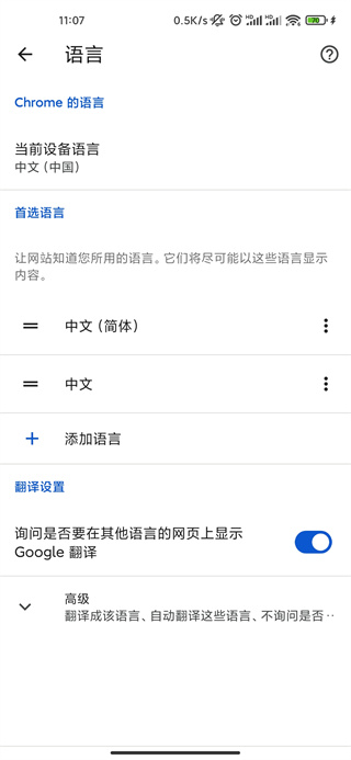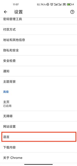 3、在打开的设置栏下划,找到【高级】-【语言】设置;