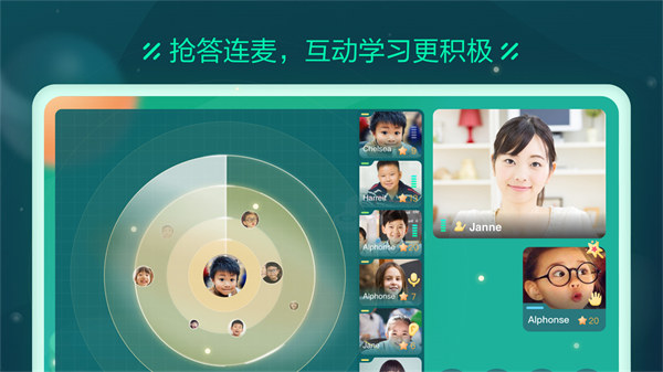 趣味教学流程:趣味教具、趣味表情、趣味奖励,拥有举手、抢答、奖励、授权、上下台和上麦等课堂控制功能,支持实时查看课堂学生学习情况,便于老师实时掌控课堂气氛,调动学生积极性。