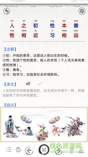 国学启蒙有声图文合集免费版是一款国学点读app,包含内容非常之广泛,可以朗读,支持点读和跟读,还有详细的注释和译文,非常适合儿童使用,欢迎大家到绿色资源网下载体验!